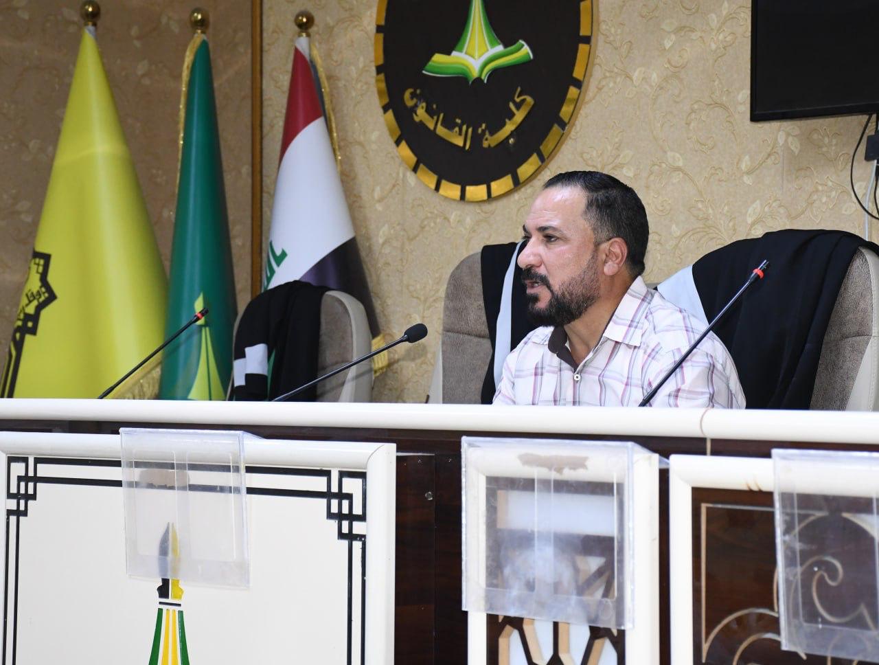 وذلك على قاعة الشهيد الدكتور ضامن العبيدي ، مفهوم التلوث المناخي وأسبابه وآثاره السلبية على البيئة والإنسان، فضلاً عن استعراض الجهود القانونية الدولية والوطنية في الحد من الانبعاثات الضارة ومكافحة التغيرات المناخية. كما تمت الإشارة إلى الدور المهم للتشريعات البيئية في حماية الموارد الطبيعية وتحقيق التنمية المستدامة ، وخرجت الدورة بعدة توصيات من أبرزها ضرورة تشديد تطبيق القوانين البيئية، ونشر الوعي المجتمعي حول أهمية الحفاظ على البيئة، وتشجيع البحوث العلمية التي تسهم في إيجاد حلول عملية للحد من التلوث المناخي.
