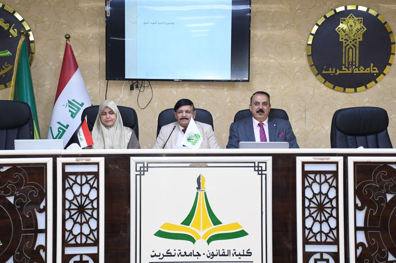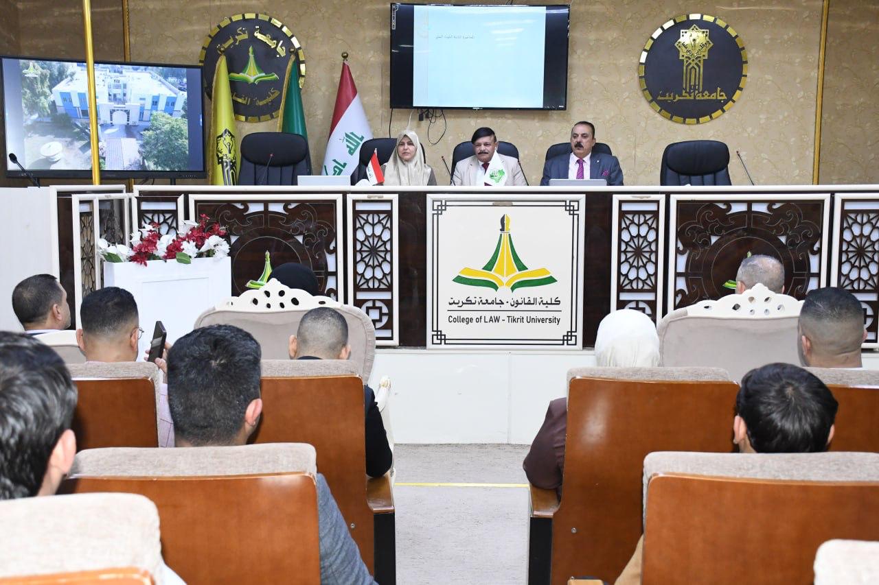 برعاية السيد رئيس جامعة تكريت الاستاذ الدكتور وعد محمود رؤوف ، والاستاذ المساعد الدكتور علي مسير ياسين نقيب الاكادميين العراقيين وبأشراف كل من الاستاذ الدكتور نايف احمد ضاحي عميد كلية القانون ، والاستاذ الدكتور محمد عطية زبار رئيس نقابة الاكادميين العراقيين / فرع صلاح الدين ، والاستاذ المساعد الدكتور سياف عبد حسين مدير مركز التعليم المستمر