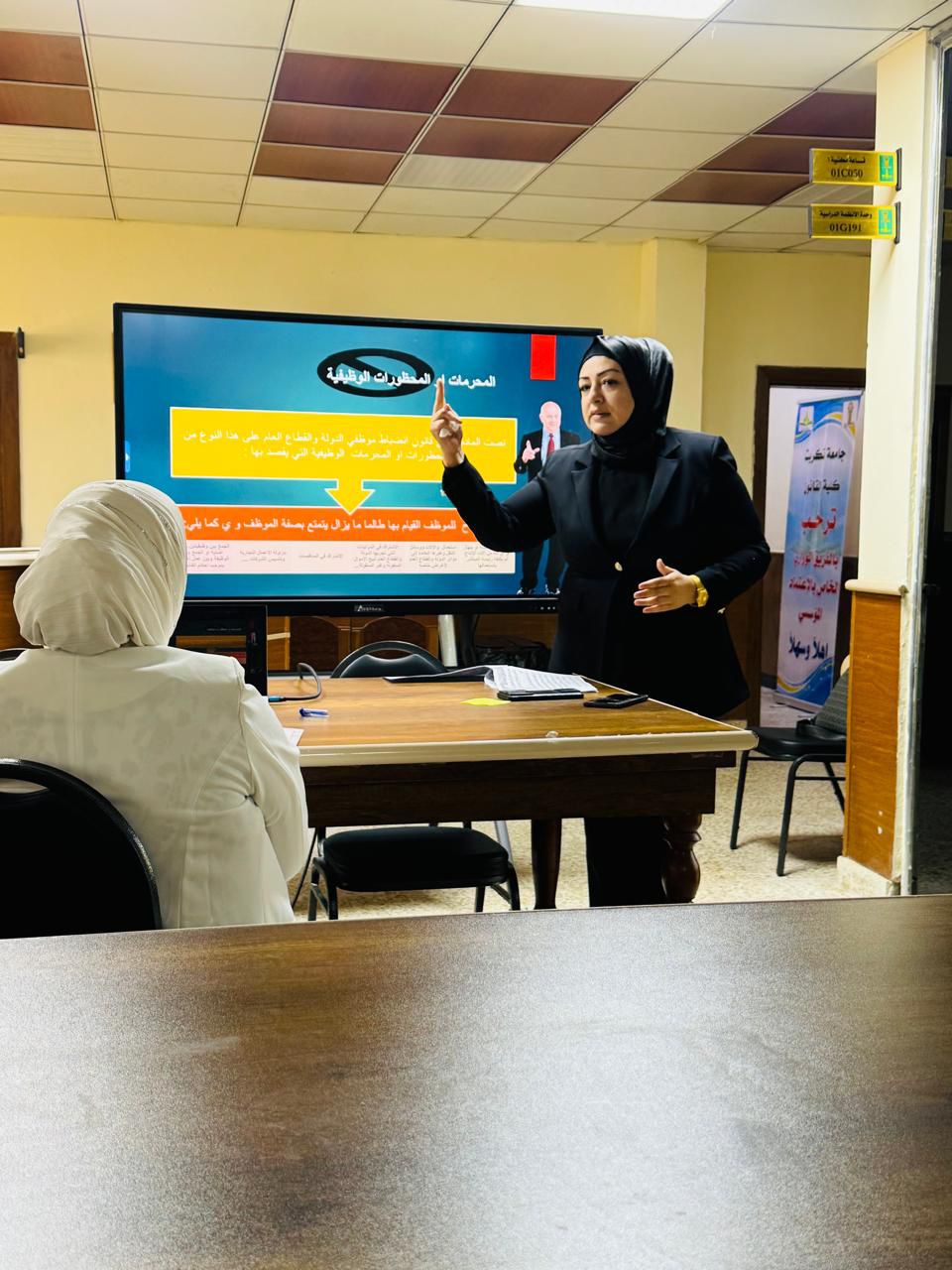 كلية القانون تنظم دورة علمية حضورية بعنوان( دور المرأة في تحقيق التنمية المستدامة في إطار القرار 1325 والقوانين الخاصة).