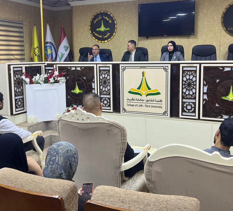 كلية القانون – جامعة تكريت تقيم ندوة علمية بعنوان مبدأ علانية الجلسات بين مقتضيات الشفافية وضرورات حمايةالخصوصية.