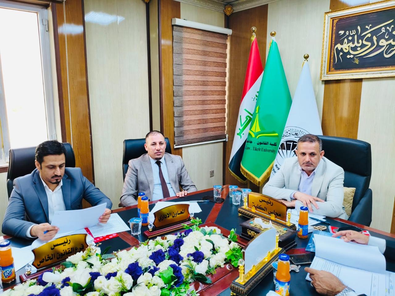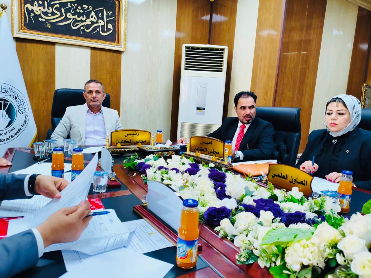 عقد مجلس الكلية صباح يوم الاربعاء الموافق 22-10-2025 جلسته الرابعة ، بحضور السيد رئيس المجلس الاستاذ الدكتور نايف احمد ضاحي ، وحضور اعضاء المجلس كافة وقد ناقش المجلس عدد من المواضيع المطروحة مع جدول اعماله واتخذ القرارات المناسبة بشأنها سائلين الباري عز وجل ان يوفق الجميع لما فيه خدمة بلدنا الحبيب.