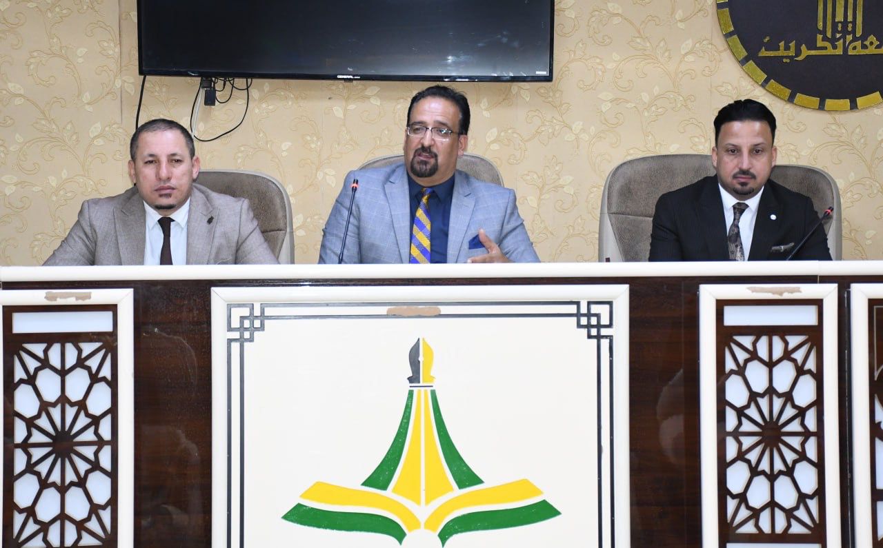 برعاية السيد رئيس جامعة تكريت الاستاذ الدكتور وعد محمود رؤوف ، وبأشراف السيد عميد كلية القانون الاستاذ الدكتور نايف احمد ضاحي ، نظمت كلية القانون وبالتعاون مع مركز التعليم المستمر في جامعة تكريت يوم الثلاثاء الموافق27-1-2026 دورة علمية بعنوان ( التحديات العلمية في ادارة المناهج البحثية بالاعتماد على تطبيقات الذكاء الاصطناعي ) وذلك على قاعة الشهيد الدكتور ضامن العبيدي حيث قدم الورشة كل من :