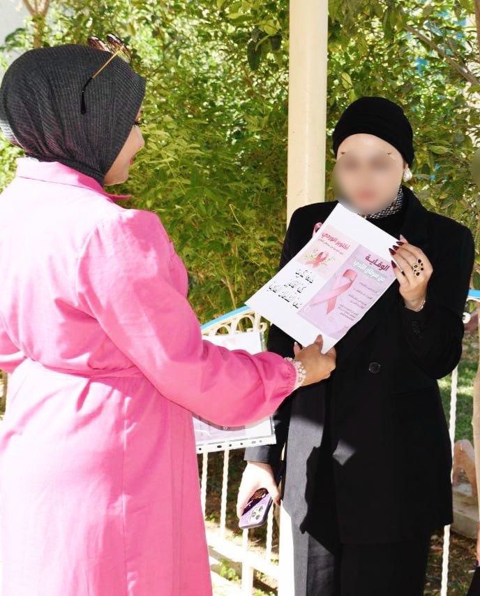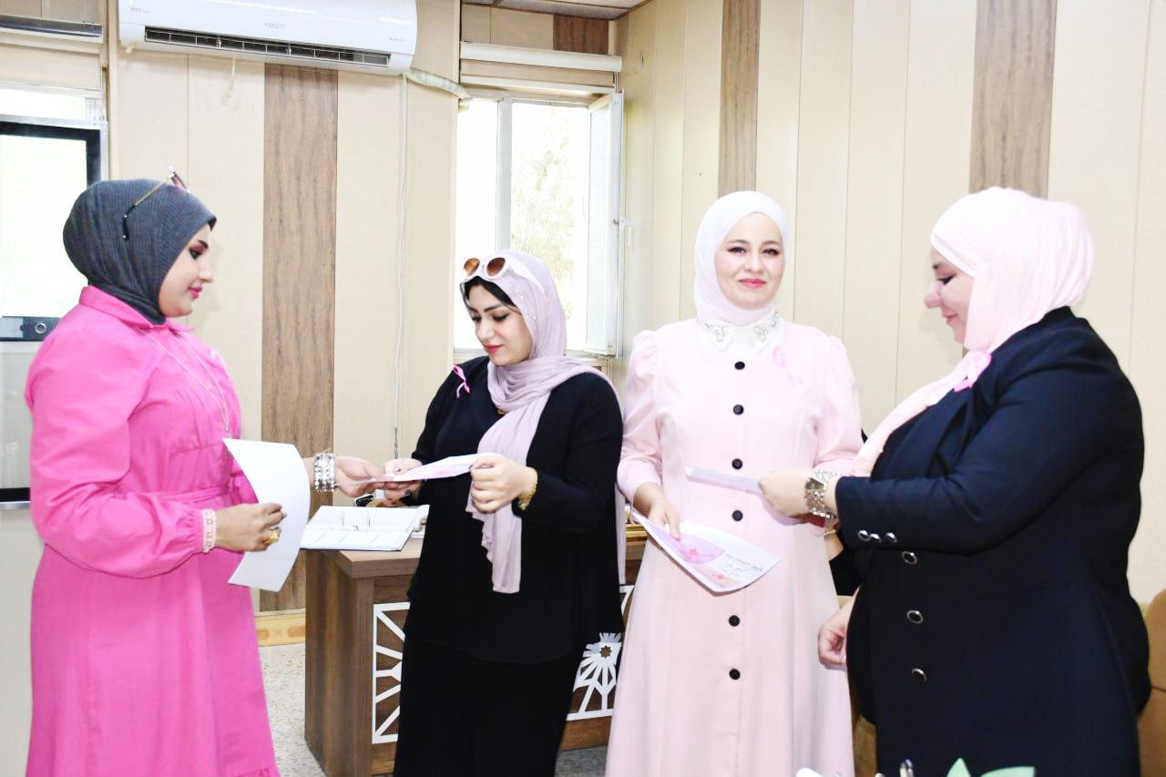في إطار شهر التوعية بسرطان الثدي، نظّمت كلية القانون - جامعة تكريت /شعبة النشاطات الطلابية صباح يوم الثلاثاء الموافق 28-10-2025 حملة توعوية بعنوان ( اكتوبر الوردي شهر التوعية ) تهدف إلى نشر الوعي الصحي بين النساء وتشجيع الكشف المبكر عن سرطان الثدي، لما له من أهمية كبيرة في الوقاية والعلاج المبكر ،تضمنت الحملة توزيع بروشورات تثقيفية وملصقات توعوية، تعريفية حول طرق الفحص الذاتي، وأهمية الكشف الدوري، والعوامل التي تزيد من احتمالية الإصابة، فضلاً عن التأكيد على أن الكشف المبكر يسهم بشكل كبير في رفع نسب الشفاء وتقليل المضاعفات ،وأكدت القائمة على الحملة أن هذه المبادرة تأتي انسجاماً مع رسالة الكلية في تعزيز ثقافة الوعي الصحي والمسؤولية المجتمعية بين الطالبات ومنتسبات الجامعة، وتسليط الضوء على دور المرأة في الاهتمام بصحتها وصحة أسرتها ،وقد شهدت الحملة تفاعلاً إيجابياً من قبل الطالبات وأعضاء الهيئة التدريسية، الذين أشادوا بأهمية الموضوع وضرورة الاستمرار في إقامة مثل هذه الأنشطة التوعوية، التي تسهم في بناء ثقافة صحية مستدامة داخل الحرم الجامعي والمجتمع. وفي ختام الحملة، وجّهت وحدة شؤون المرأة و وحدة شؤون المرأة ذات الإعاقة دعوة لجميع النساء إلى إجراء الفحص الدوري لسرطان الثدي، ومراجعة المراكز الصحية المختصة بشكل منتظم، مؤكدين أن الوقاية والكشف المبكر هما السبيل الأمثل للحفاظ على الصحة والحد من انتشار المرض.