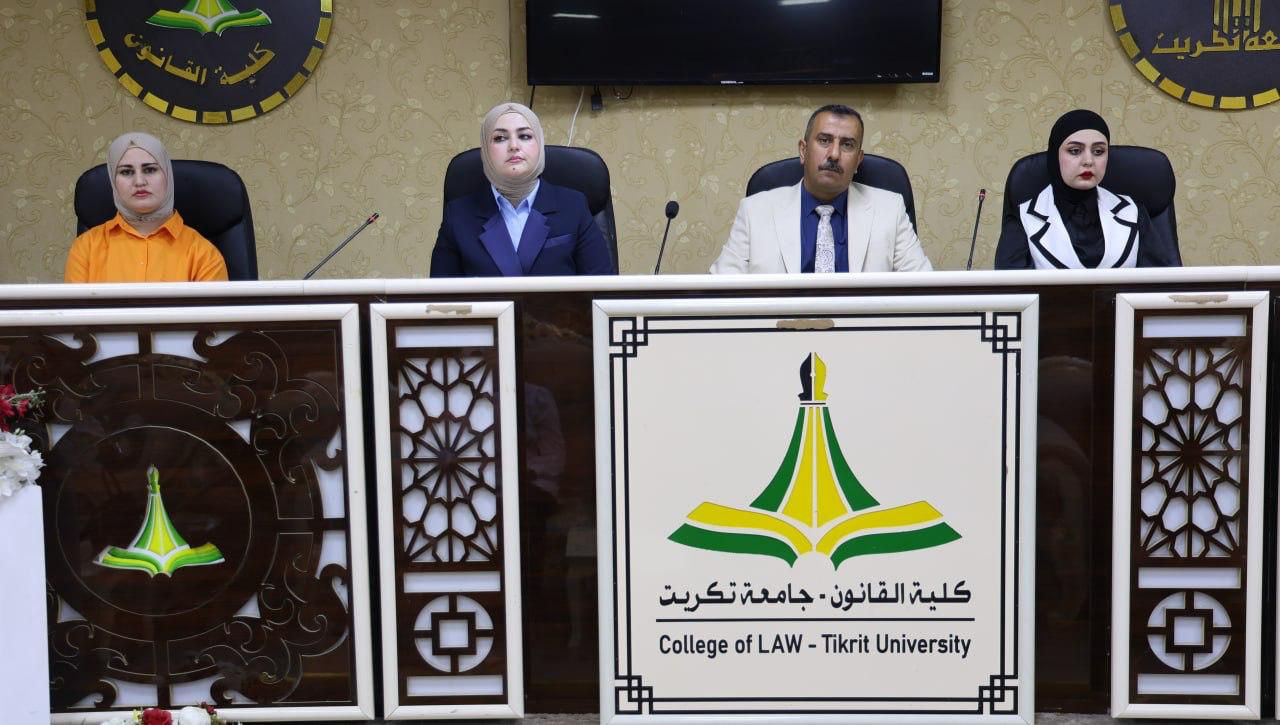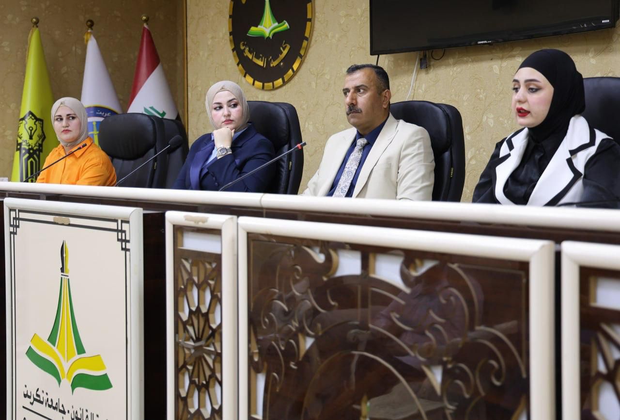 برعاية الاستاذ الدكتور (وعد محمود رؤوف) رئيس جامعة تكريت المحترم، وبإشراف الاستاذ المساعد الدكتور (نايف احمد ضاحي) عميد كلية القانون المحترم، و الاستاذ المساعد الدكتور (سياف عبد حسين) مدير مركز التعليم المستمر، اقيمت صباح يوم الثلاثاء الموافق 2026/4/21 ندوة علمية حضورية بعنوان (المواجهة القانونية لمشكلة المخدرات الرقمية)، بمشاركة نخبة من أساتذة الكلية، وهم كلٌّ من: