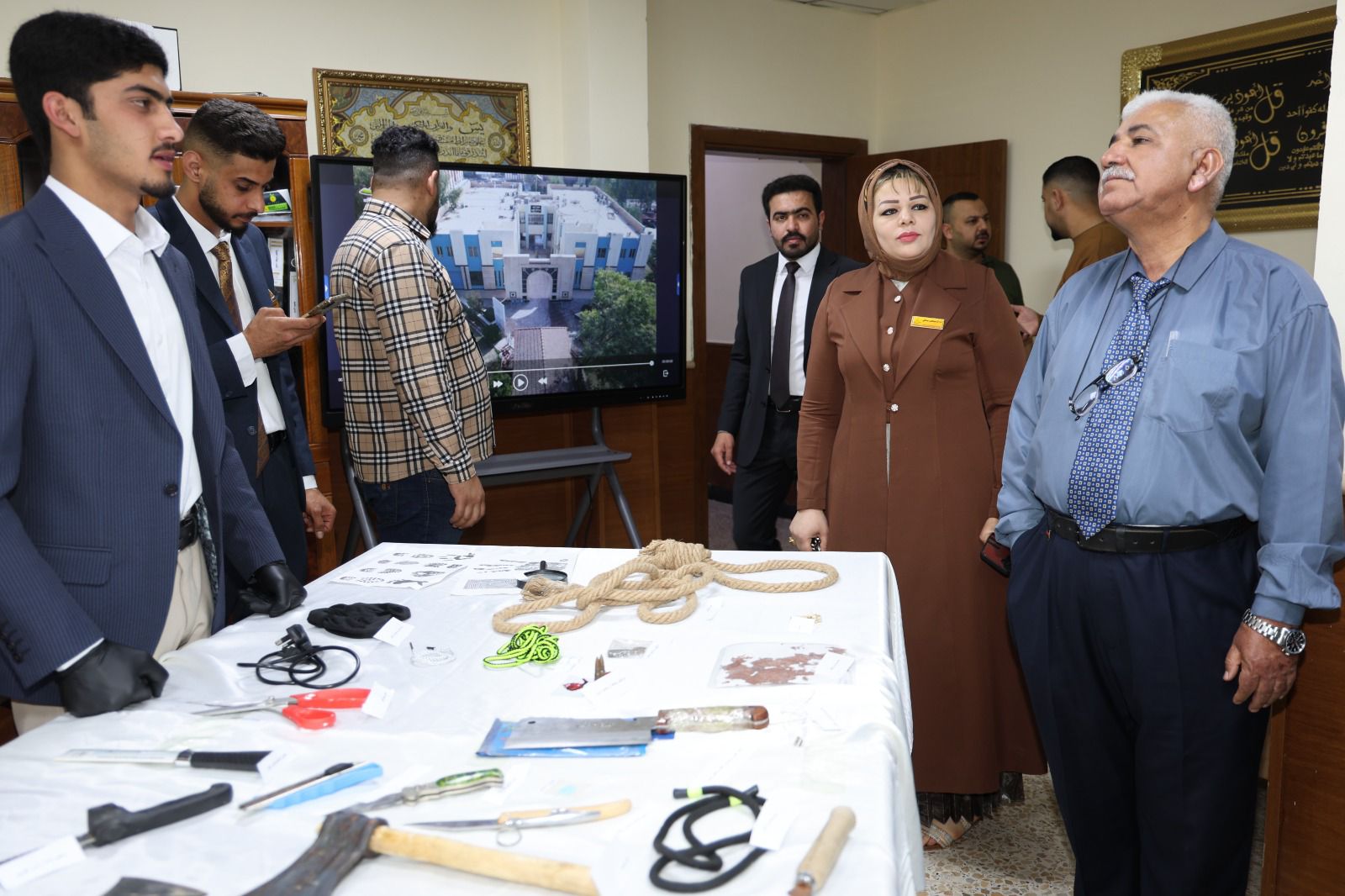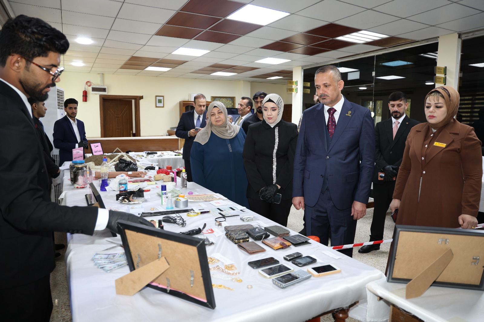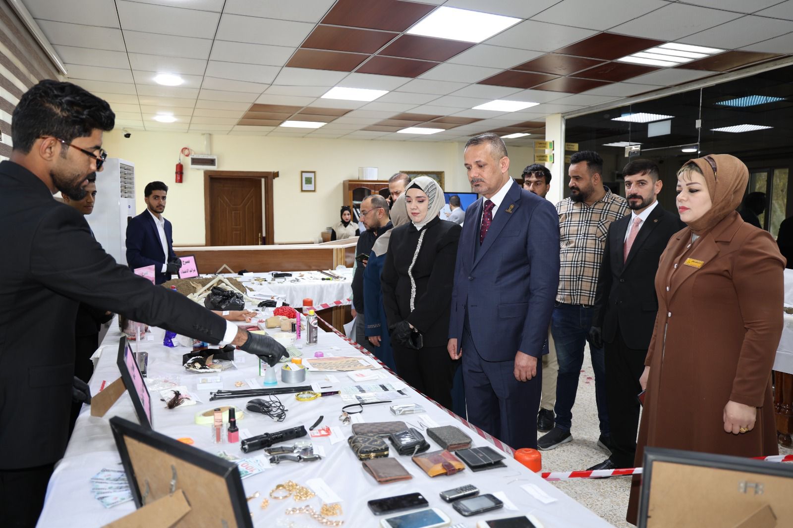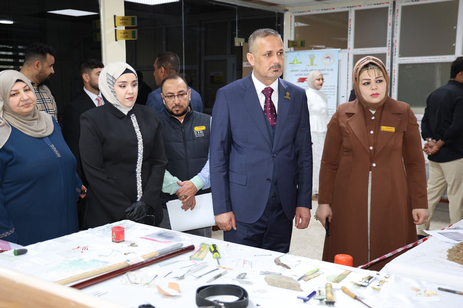 أقامت كلية القانون - جامعة تكريت معرضًا علميًا للأدلة الجنائية صباح يوم الاربعاء الموافق 8-4-2026 وذلك على مكتبة الكلية ضمن نشاطاتها الأكاديمية الهادفة إلى تعزيز الجانب التطبيقي لدى الطلبة وربط الجوانب النظرية بالتطبيق العملي في المجال القانوني ، وشهد المعرض عرض نماذج متنوعة من الأدلة الجنائية المستخدمة في التحقيقات، مثل البصمات، والأدلة البيولوجية، ووسائل الكشف الحديثة، فضلاً عن تقديم شروحات تفصيلية حول آليات جمع الأدلة وتحليلها وفق الأسس العلمية والقانونية المعتمدة ،كما تضمن المعرض مشاركة فاعلة من قبل طلبة الكلية بإشراف أساتذتهم، حيث قدموا عروضًا توضيحية عكست مدى فهمهم لأهمية الأدلة الجنائية في تحقيق العدالة وكشف الجرائم ، ويأتي تنظيم هذا المعرض في إطار حرص الكلية على تطوير مهارات طلبتها وتهيئتهم لسوق العمل، بما يسهم في رفد المؤسسات القضائية والأمنية بكوادر قانونية مؤهلة تمتلك المعرفة النظرية والخبرة التطبيقية.