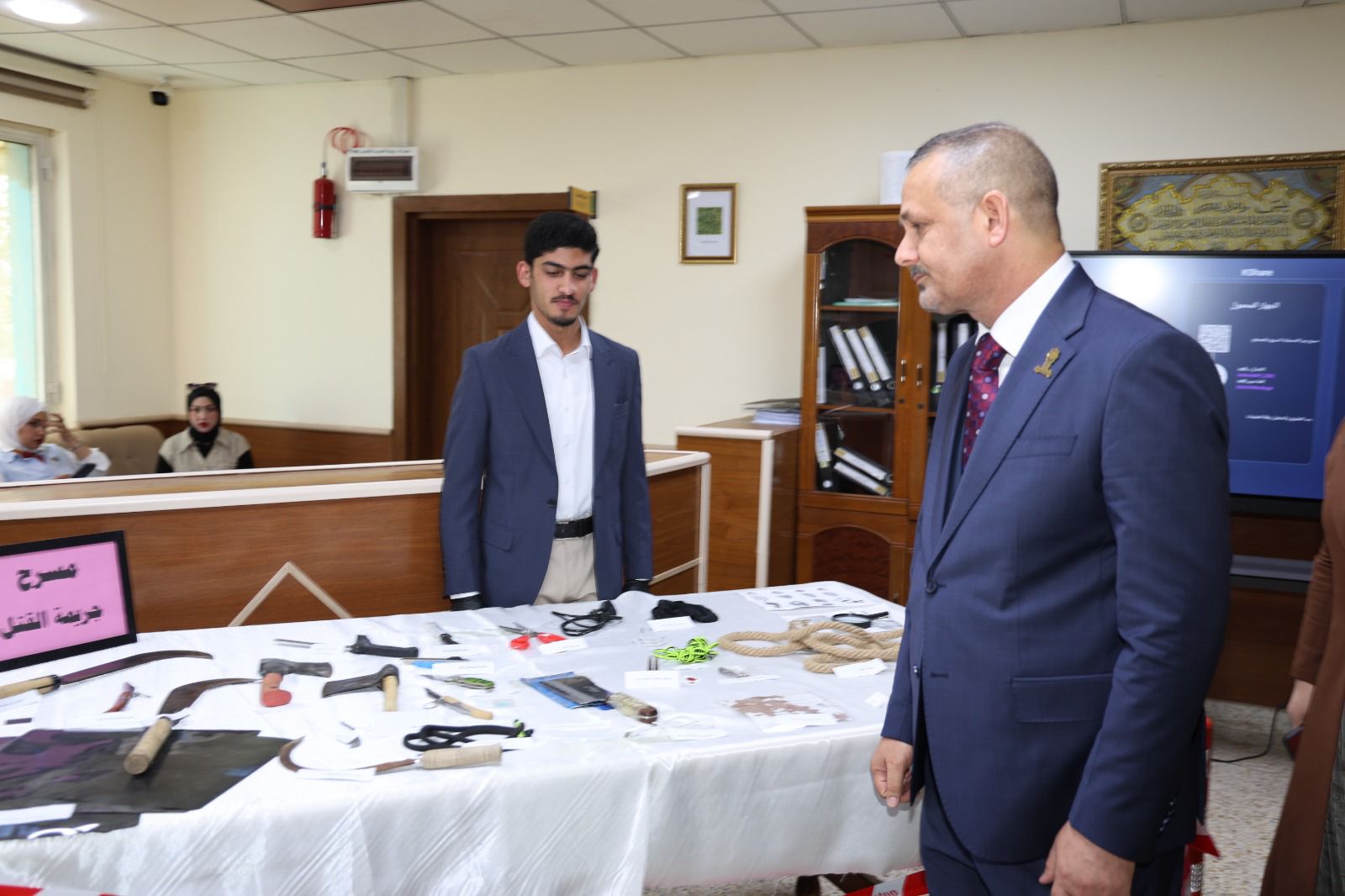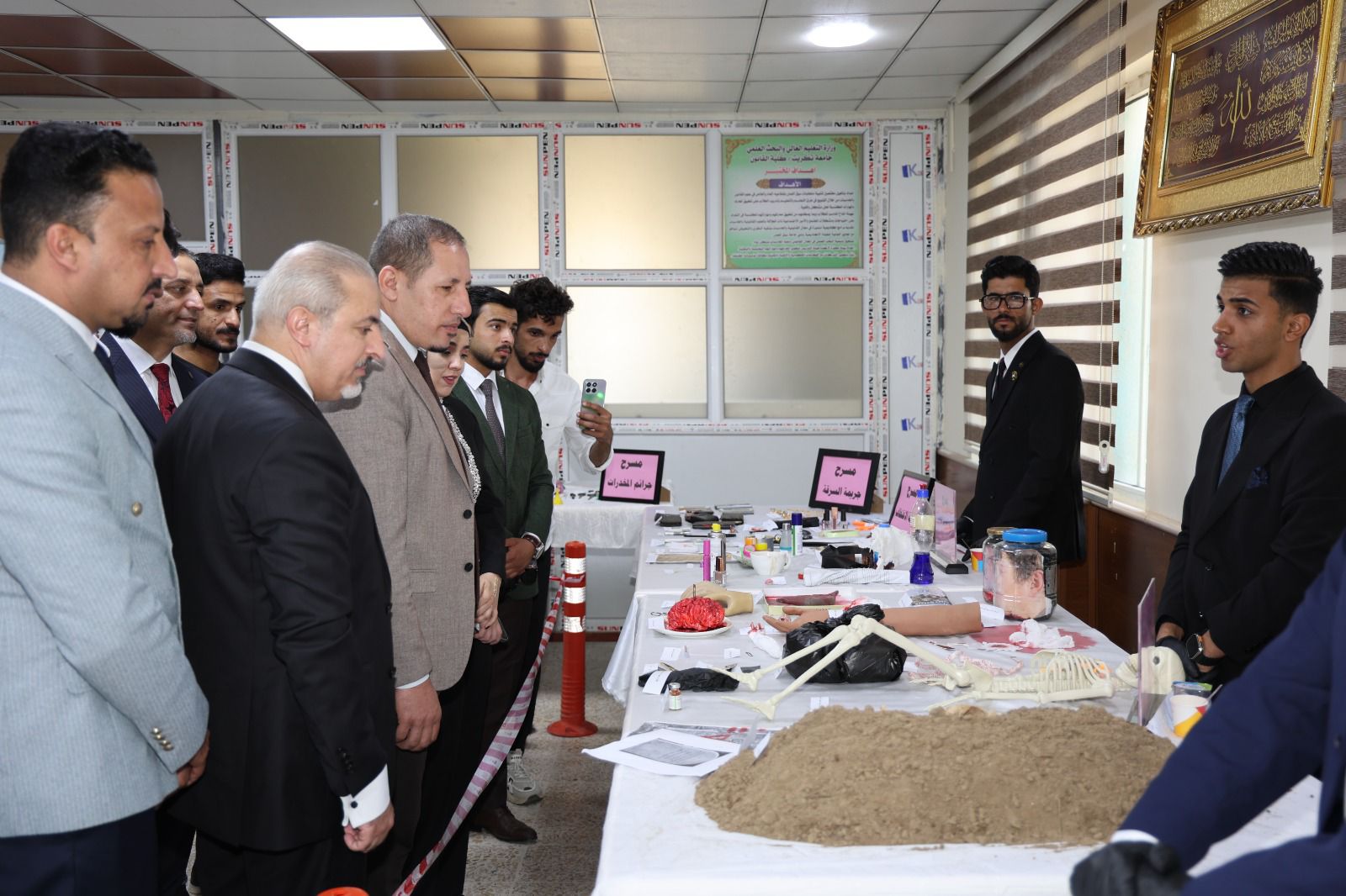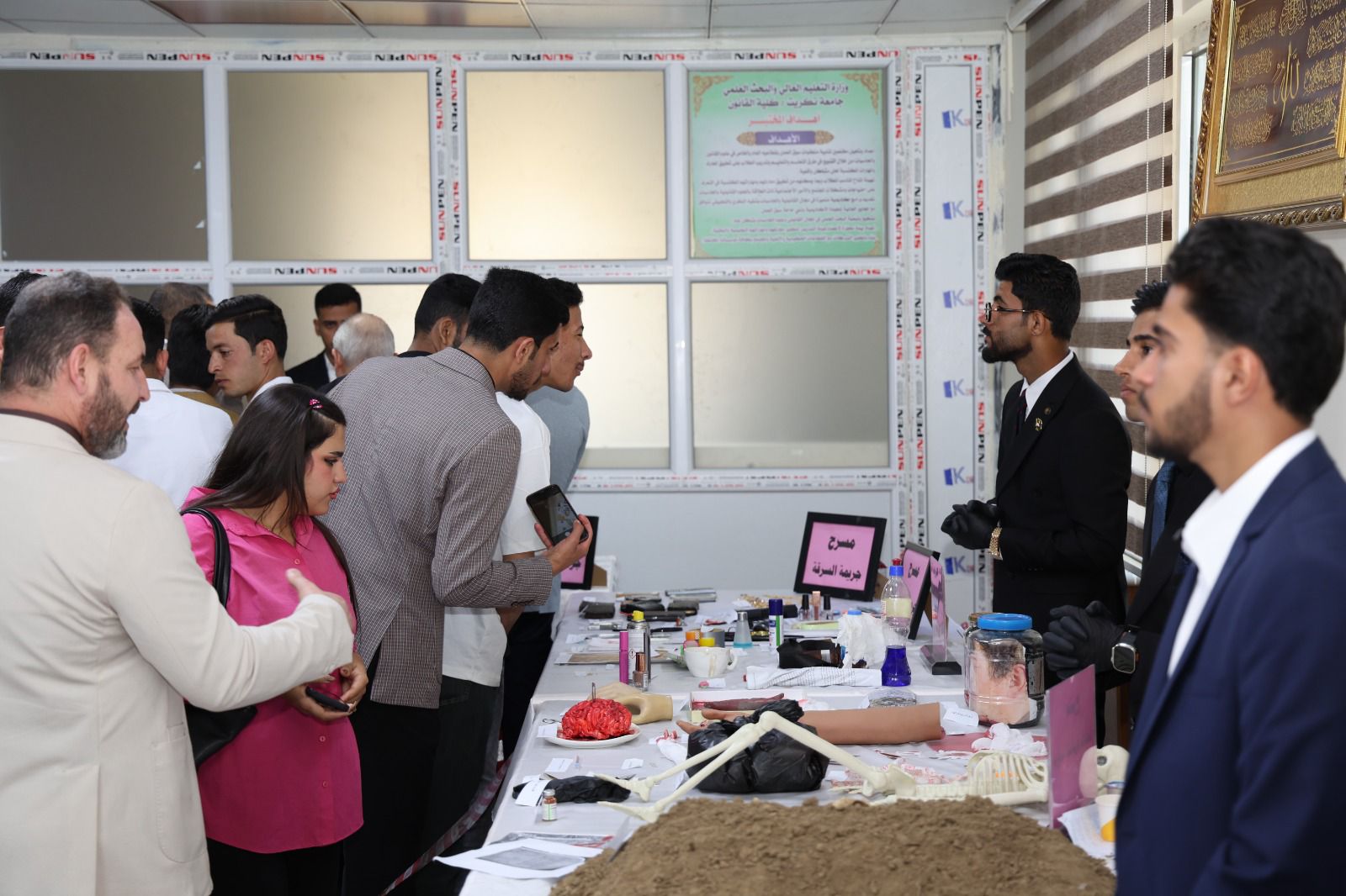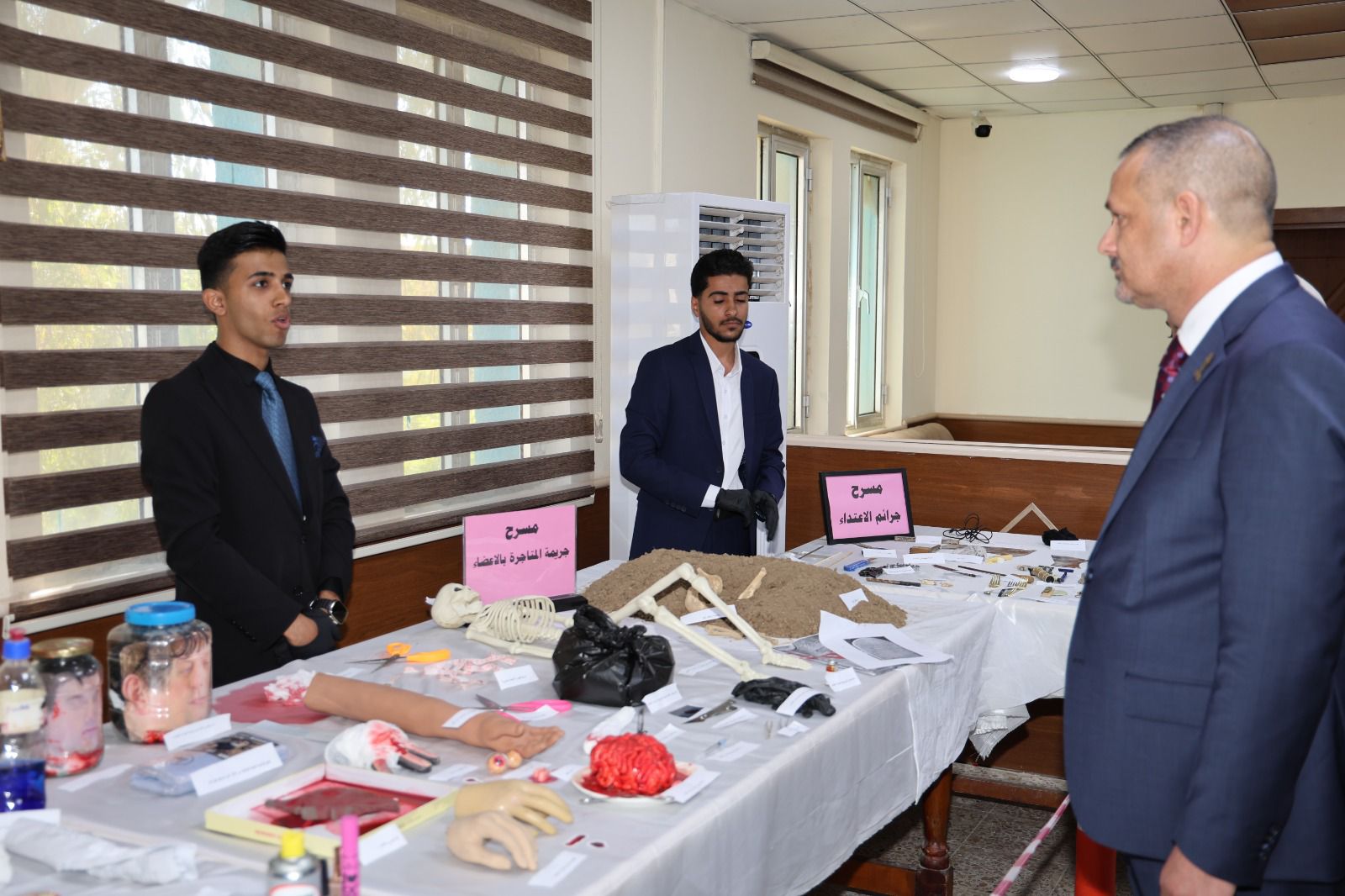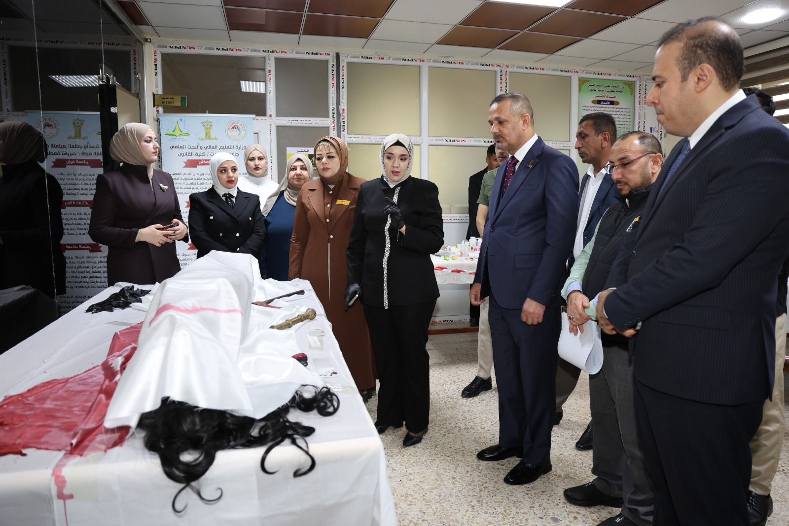 أقامت كلية القانون - جامعة تكريت معرضًا علميًا للأدلة الجنائية صباح يوم الاربعاء الموافق 8-4-2026 وذلك على مكتبة الكلية ضمن نشاطاتها الأكاديمية الهادفة إلى تعزيز الجانب التطبيقي لدى الطلبة وربط الجوانب النظرية بالتطبيق العملي في المجال القانوني ، وشهد المعرض عرض نماذج متنوعة من الأدلة الجنائية المستخدمة في التحقيقات، مثل البصمات، والأدلة البيولوجية، ووسائل الكشف الحديثة، فضلاً عن تقديم شروحات تفصيلية حول آليات جمع الأدلة وتحليلها وفق الأسس العلمية والقانونية المعتمدة ،كما تضمن المعرض مشاركة فاعلة من قبل طلبة الكلية بإشراف أساتذتهم، حيث قدموا عروضًا توضيحية عكست مدى فهمهم لأهمية الأدلة الجنائية في تحقيق العدالة وكشف الجرائم ، ويأتي تنظيم هذا المعرض في إطار حرص الكلية على تطوير مهارات طلبتها وتهيئتهم لسوق العمل، بما يسهم في رفد المؤسسات القضائية والأمنية بكوادر قانونية مؤهلة تمتلك المعرفة النظرية والخبرة التطبيقية.
