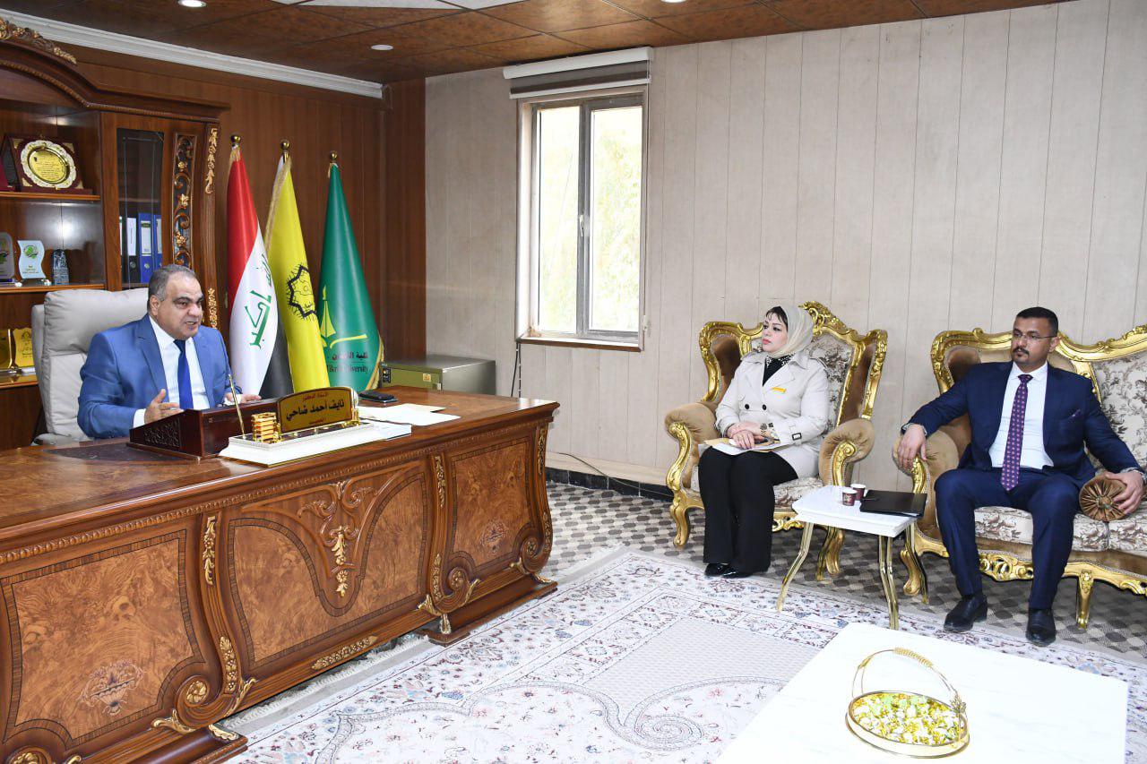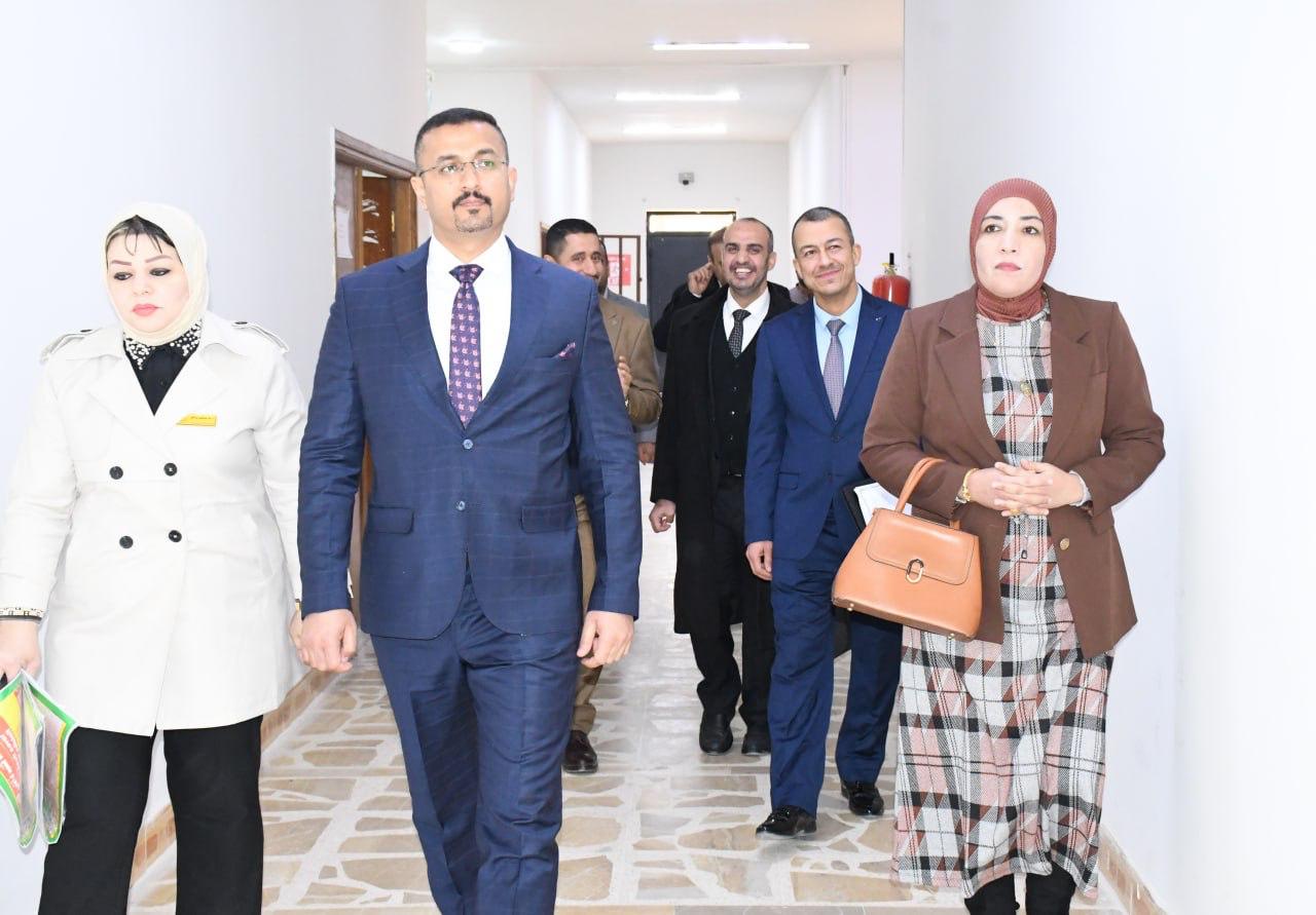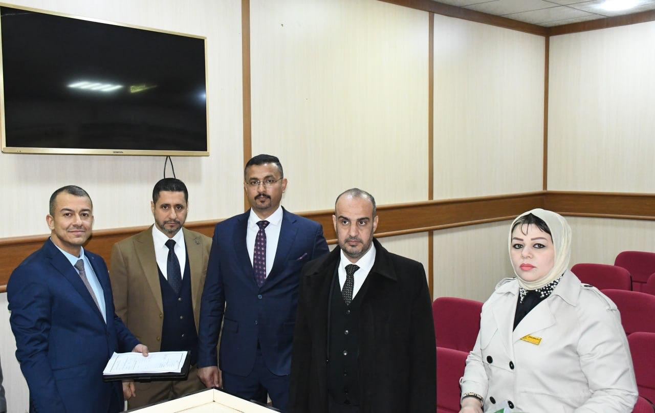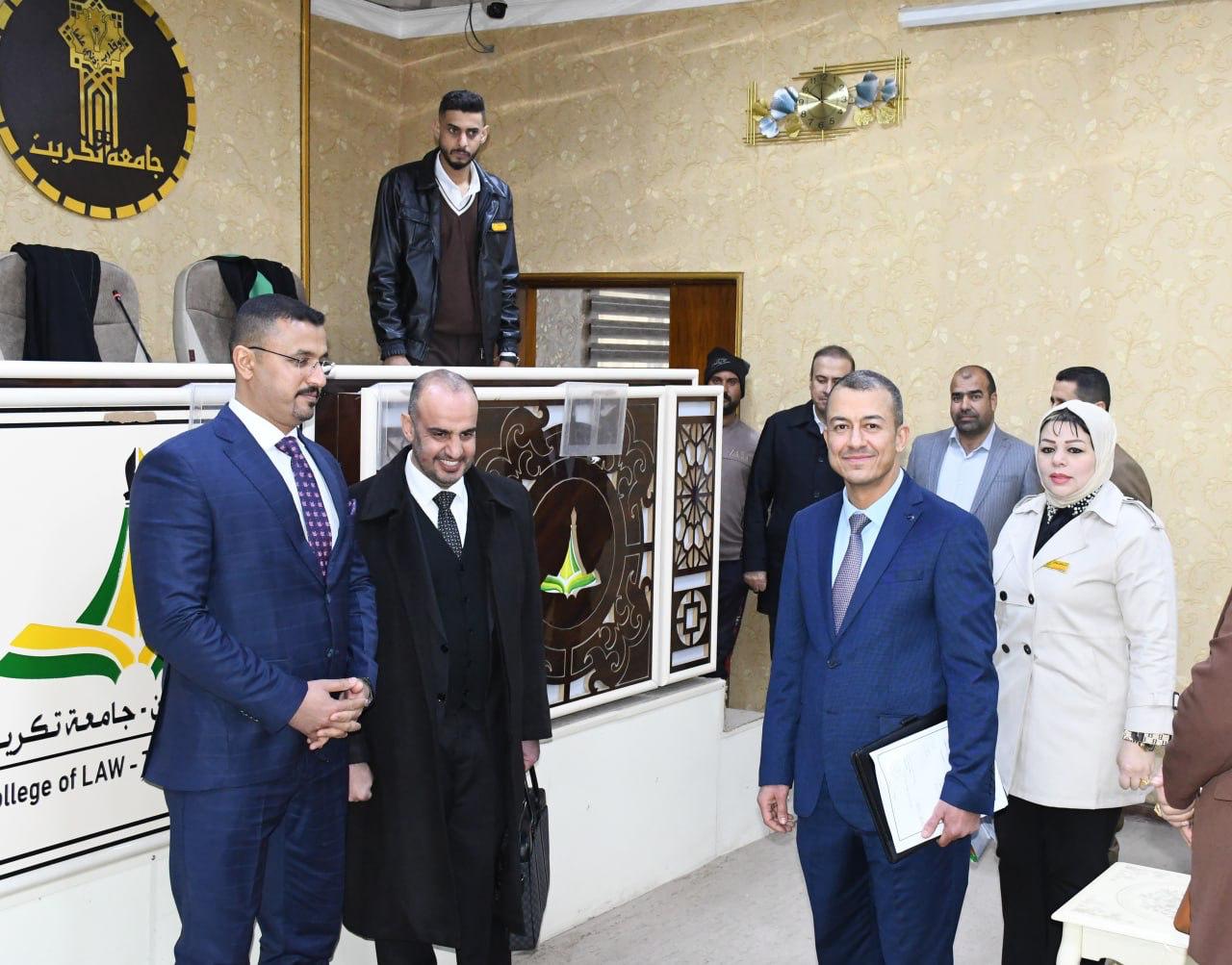 استقبلت كلية القانون في جامعة تكريت صباح هذا اليوم الاثنين الموافق 19-1-2026 لجنة وزارية مختصة من وزارة التعليم العالي والبحث العلمي، وذلك لغرض الاطلاع على الإمكانات العلمية والأكاديمية واللوجستية الخاصة باستحداث دراسة الدكتوراه في اختصاص القانون التجاري ، وجاءت الزيارة في إطار تقييم استيفاء الكلية للمعايير والضوابط المعتمدة من قبل الوزارة، حيث عقدت اللجنة اجتماعاً مع عمادة الكلية والسادة معاوني العميد ورؤساء الفروع وعدد من التدريسيين، جرى خلاله استعراض المناهج العلمية المقترحة والكوادر التدريسية والبنى التحتية،فضلاً عن الخطط البحثية المستقبلية للدراسة المقترحة ، كما قامت اللجنة بجولة ميدانية شملت القاعات الدراسية والمكتبة القانونية والمرافق العلمية وأبدت ملاحظاتها وتوصياتها بما يسهم في دعم مساعي الكلية لاستحداث هذا البرنامج الأكاديمي المهم.