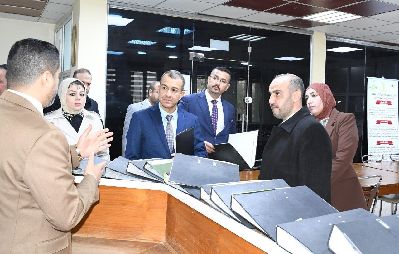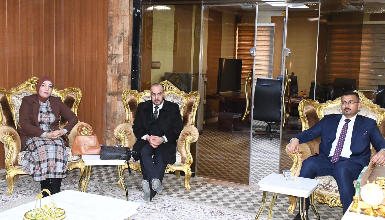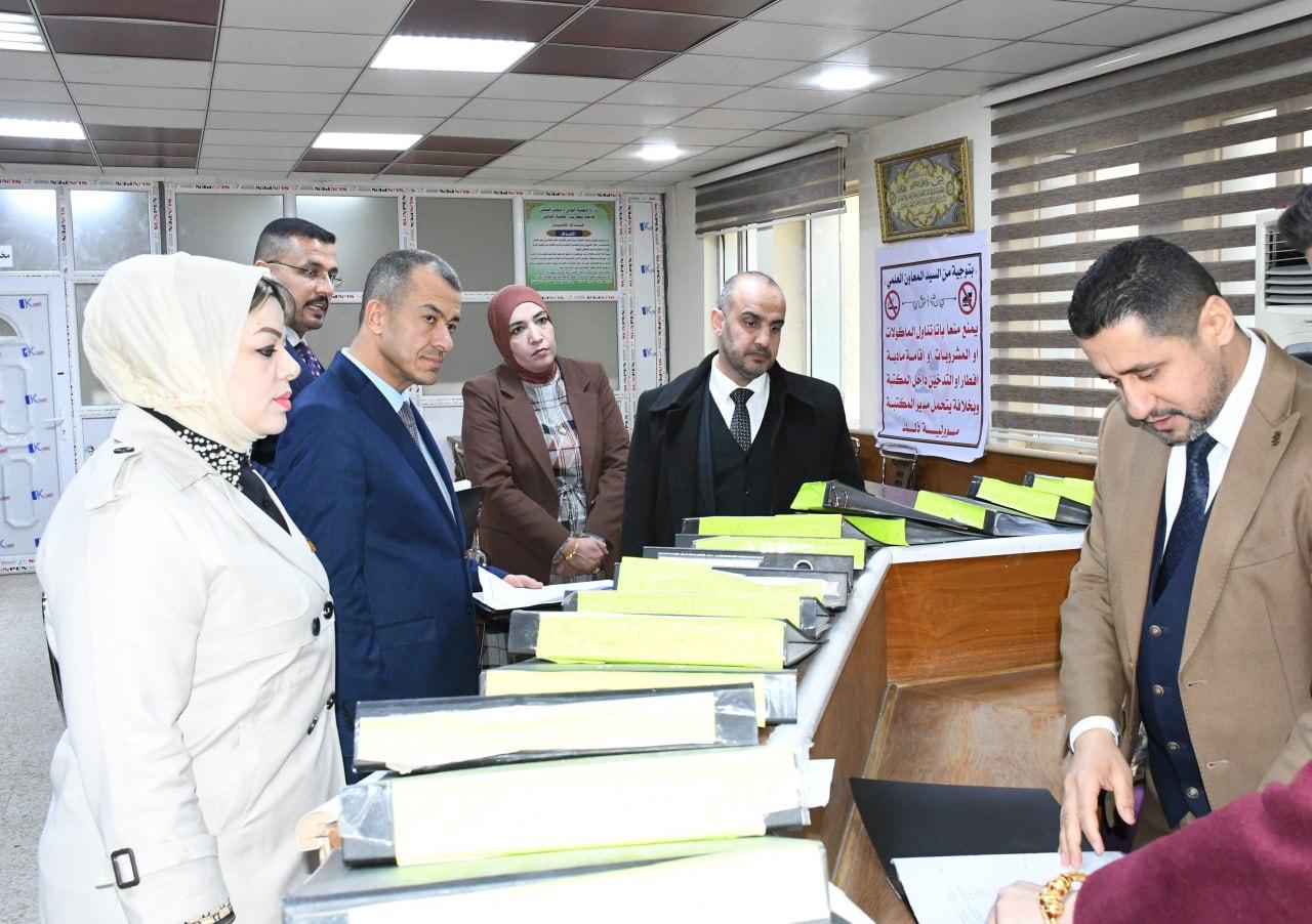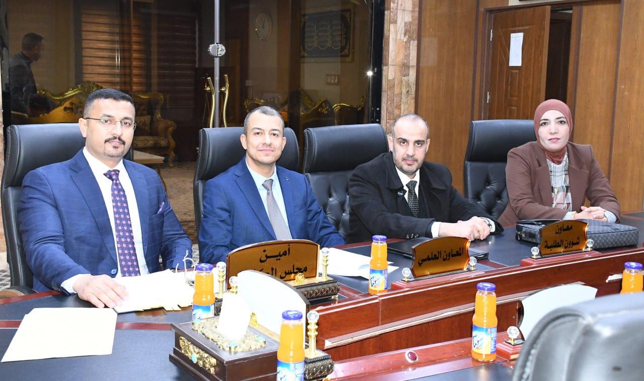 استقبلت كلية القانون في جامعة تكريت صباح هذا اليوم الاثنين الموافق 19-1-2026 لجنة وزارية مختصة من وزارة التعليم العالي والبحث العلمي، وذلك لغرض الاطلاع على الإمكانات العلمية والأكاديمية واللوجستية الخاصة باستحداث دراسة الدكتوراه في اختصاص القانون التجاري ، وجاءت الزيارة في إطار تقييم استيفاء الكلية للمعايير والضوابط المعتمدة من قبل الوزارة، حيث عقدت اللجنة اجتماعاً مع عمادة الكلية والسادة معاوني العميد ورؤساء الفروع وعدد من التدريسيين، جرى خلاله استعراض المناهج العلمية المقترحة والكوادر التدريسية والبنى التحتية،فضلاً عن الخطط البحثية المستقبلية للدراسة المقترحة ، كما قامت اللجنة بجولة ميدانية شملت القاعات الدراسية والمكتبة القانونية والمرافق العلمية وأبدت ملاحظاتها وتوصياتها بما يسهم في دعم مساعي الكلية لاستحداث هذا البرنامج الأكاديمي المهم.