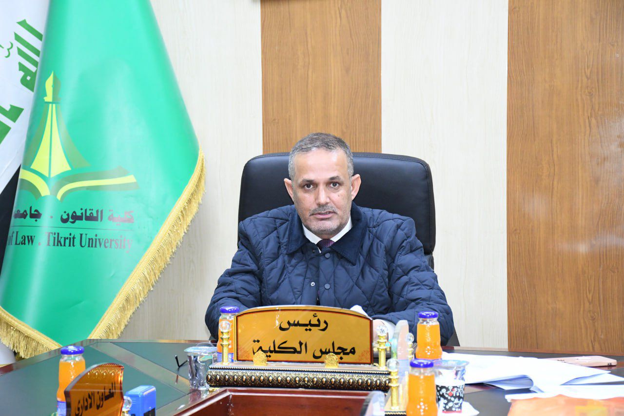عقد مجلس كلية القانون – جامعة تكريت صباح يوم الاثنين الموافق 15-12-2025 جلسته السابعةبرئاسة السيد عميد الكلية أ.د. نايف احمد ضاحي وبحضور السادة أعضاء المجلس كافة، حيث جرى خلال الجلسة مناقشة عدد من القضايا الأكاديمية والإدارية المدرجة على جدول الأعمال، واختُتمت الجلسة بتوجيه السيد العميد شكره للسادة الأعضاء؛ لما أبدوه من ملاحظات قيّمة ومقترحات بنّاءة تخدم مسيرة الكلية وتسهم في الارتقاء بمستوى الأداء الأكاديمي.