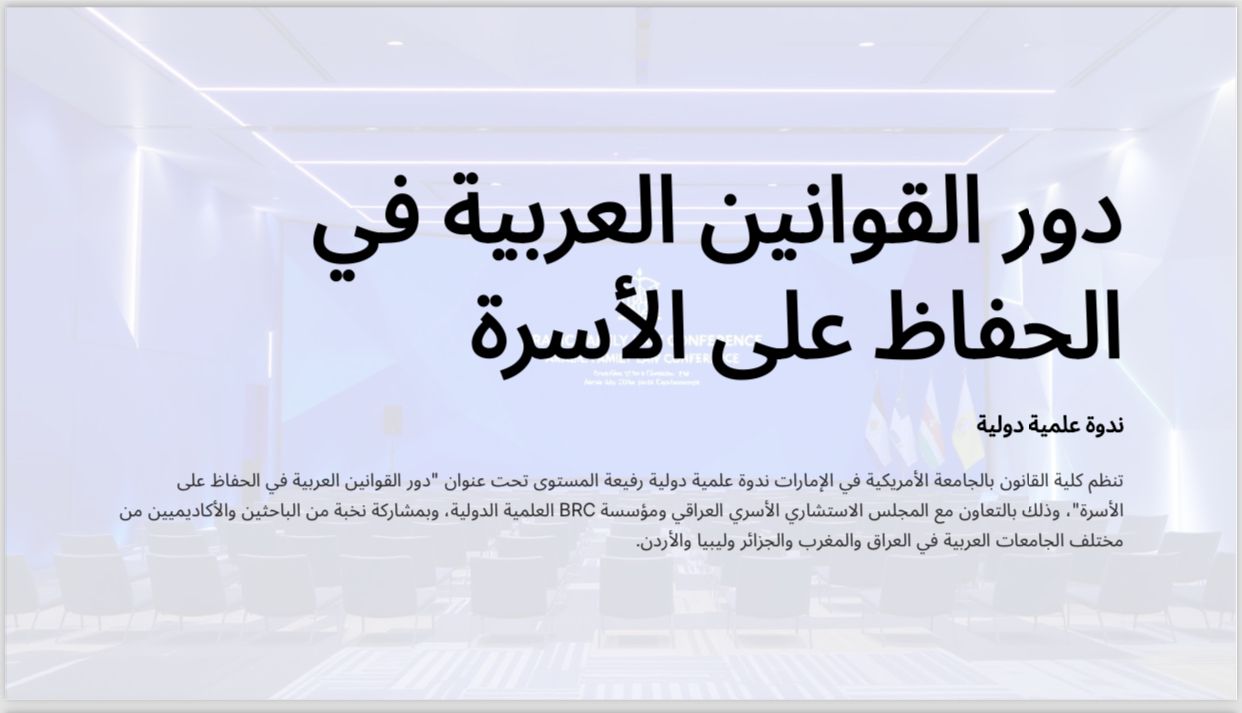 شارك كلٌّ من الأستاذ الدكتور أحمد خلف الدخيل و الدكتورة سمية فاضل عبد الله من كلية القانون – جامعة تكريت، يوم الخميس الموافق 16/10/2025، في ندوة علمية دولية رفيعة المستوى نظمتها كلية القانون في الجامعة الأمريكية بالإمارات بعنوان:“دور القوانين العربية في الحفاظ على الأسرة”،وذلك بالتعاون مع المجلس الاستشاري الأسري العراقي ومؤسسة BRC العلمية الدولية.وشهدت الندوة مشاركة نخبة من الأكاديميين والباحثين من مختلف الجامعات العربية في العراق والمغرب والجزائر وليبيا والأردن، حيث تناولت المحاور القانونية والاجتماعية المتعلقة بحماية الأسرة العربية وتعزيز دور التشريعات في صون استقرارها.