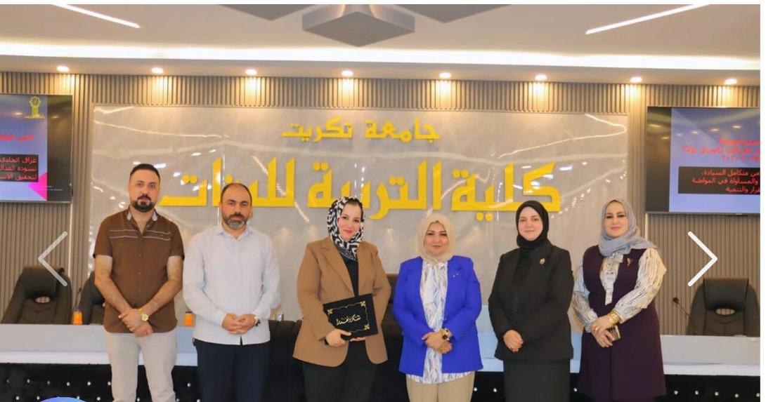 شاركت الدكتورة سمية فاضل عبدالله التدريسية في كلية القانون ندوة بعنوان “متابعة وتفعيل استراتيجية الأمن الوطني – العراق أولاً”، التي انعقدت صباح الأربعاء 24 أيلول 2025.في رحاب كلية التربية للبنات – جامعة تكريت.وخلال الندوة تم استعراض أبرز مرتكزات استراتيجية الأمن الوطني العراقي، مشددةً على أهمية متابعة تنفيذها وتفعيل برامجها بما يحقق أهدافها المستقبلية.وتم التاكيد على ضرورة التكامل بين الجامعات ومؤسسات الدولة في دعم الأمن الوطني عبر البحث العلمي وإعداد الكفاءات القادرة على مواجهة التحديات الأمنية والاقتصادية والاجتماعية التي يمر بها العراق.واختتمت الندوة بالتوصية على توسيع دائرة الوعي المجتمعي بأهمية الاستراتيجية الوطنية ودور الجامعات في ترسيخ مكانة العراق إقليمياً ودولياً، بما يجعلها شريكاً فاعلاً في صياغة الرؤى المستقبلية.