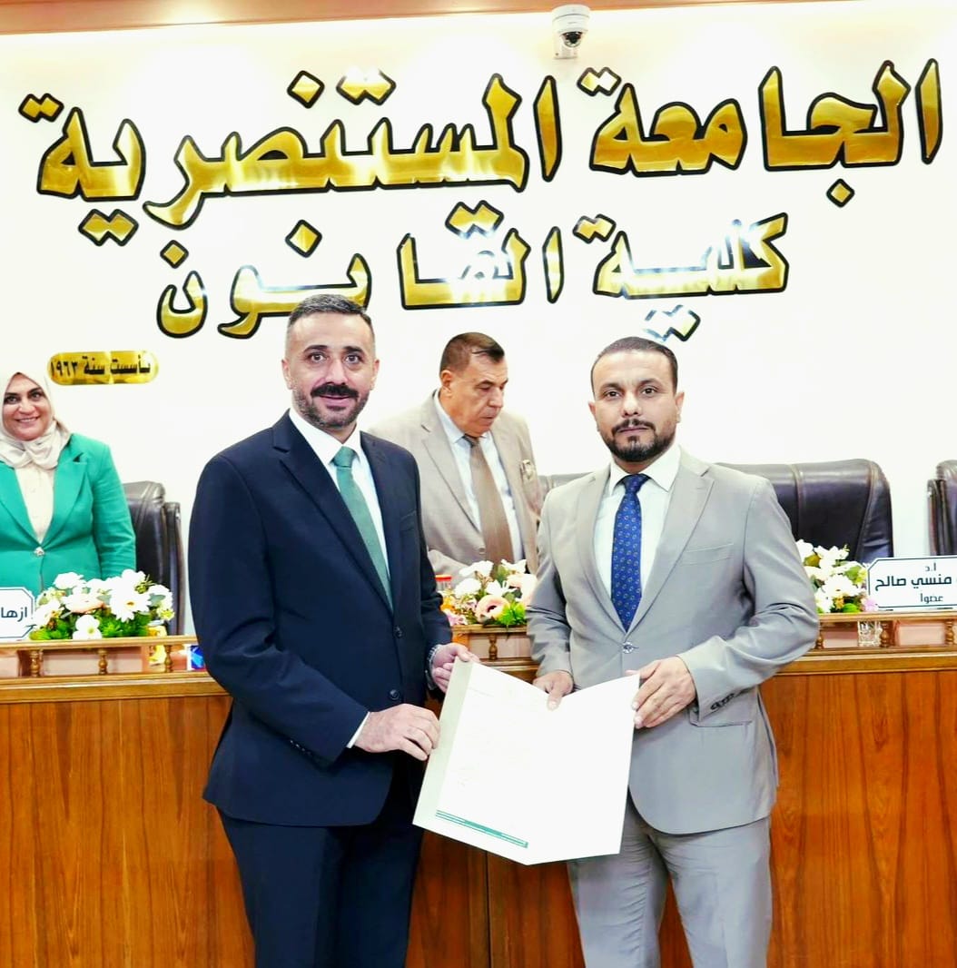 شارك الأستاذ الدكتور حسام حميد شهاب هذا اليوم المصادف 16/ 11/ 2025 في مناقشة أطروحة الدكتوراه و الموسومة (حماية مقومات الديمقراطية في القانون الدولي العام) للطالبة سرى باسم عبدالمجيد وذلك في كلية القانون بالجامعة المستنصرية.