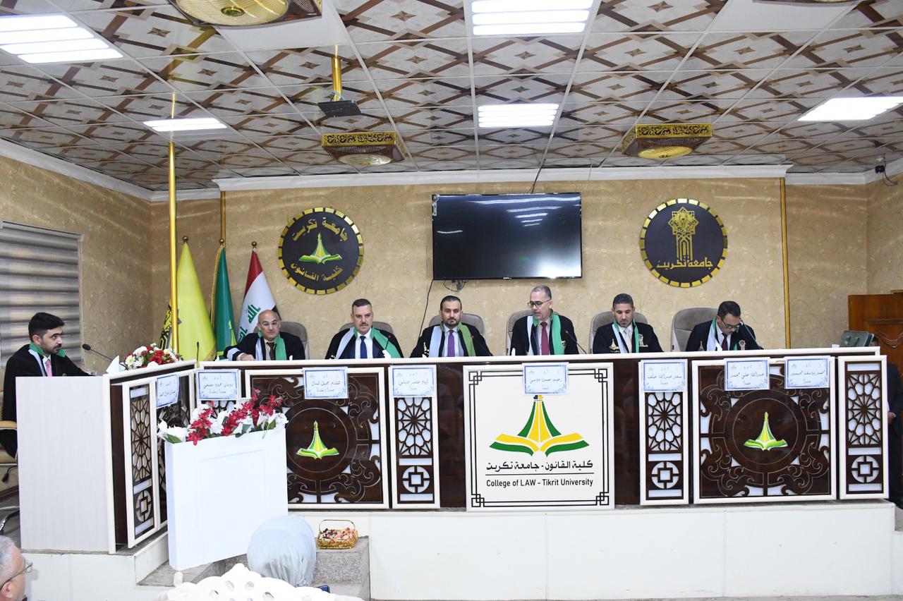 نوقشت في كلية القانون - جامعة تكريت اطروحة دكتوراه في القانون الخاص للطالب (عمران عادل جمعة) والموسومة ب (أشكالية الجمع بين منصب الرئيس والقائد العام للقوات المسلحة - دراسة مقارنة) على قاعة الشهيد الدكتور ضامن العبيدي في مبنى الكلية صباح يوم الاربعاء الموافق 19-11-2025.