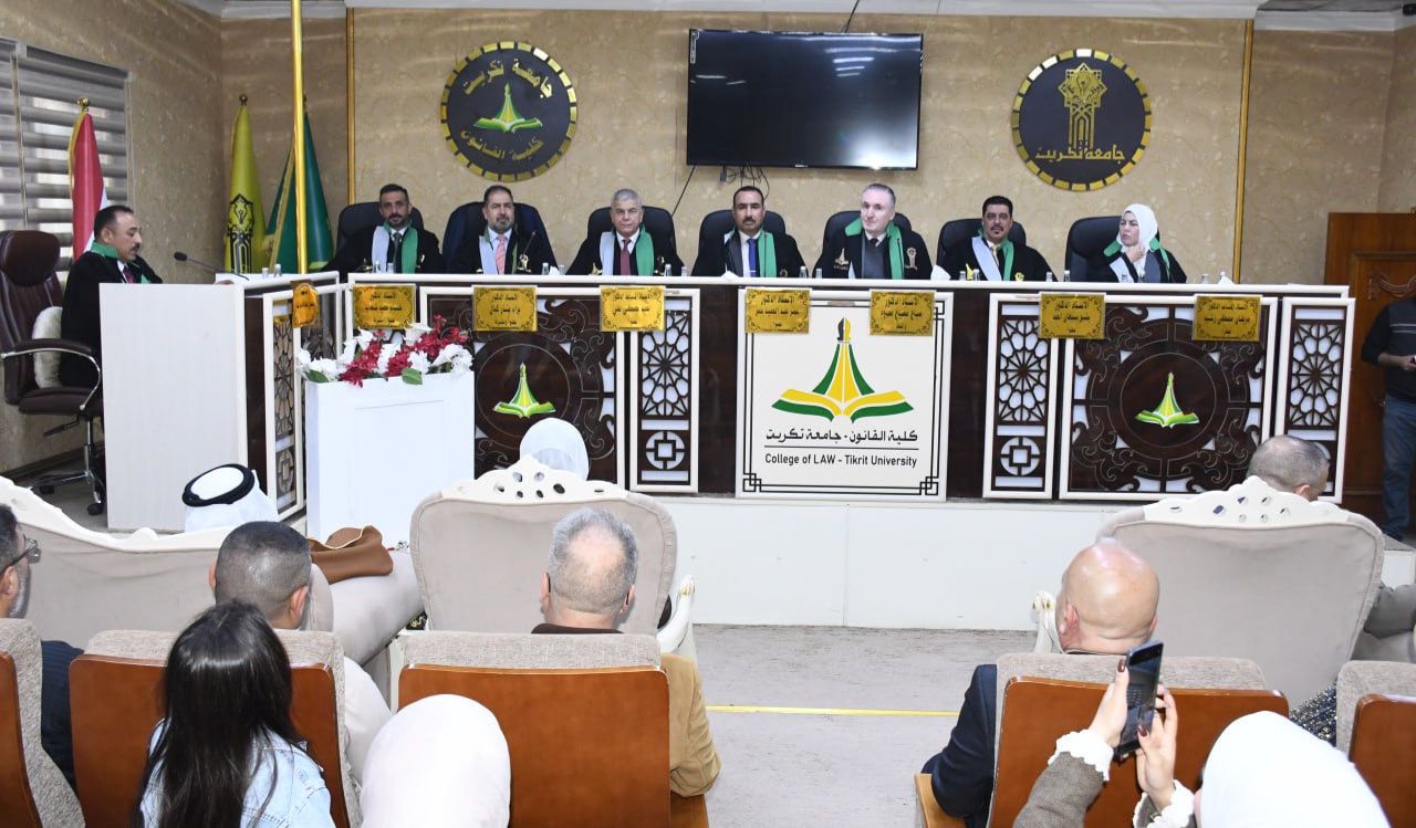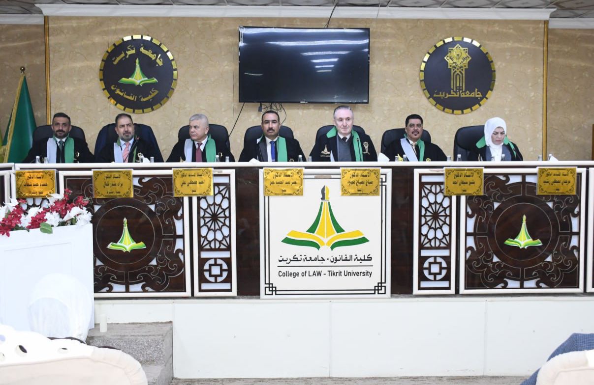 نوقشت في كلية القانون - جامعة تكريت أطروحة دكتوراه في القانون العام للطالب (جميل عبدالله عبدالفتاح) والموسومة ب (دور فرق الأمم المتحدة في التحقيق الجرمي) وذلك على قاعة الشهيد الدكتور ضامن العبيدي صباح يوم الثلاثاء الموافق 17-2-2026