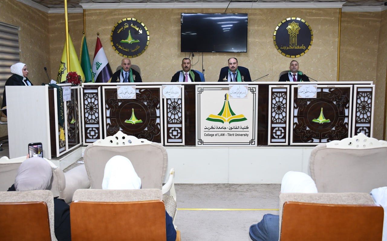 نوقشت في كلية القانون - جامعة تكريت رسالة ماجستير في القانون الجنائي للطالبة (آيات جبار عبد عون) والموسومة ب (الحماية الجنائية للأصول - دراسة مقارنة.) وذلك على قاعة الشهيد الدكتور ضامن العبيدي صباح يوم الاحد الموافق 19-10-2025.