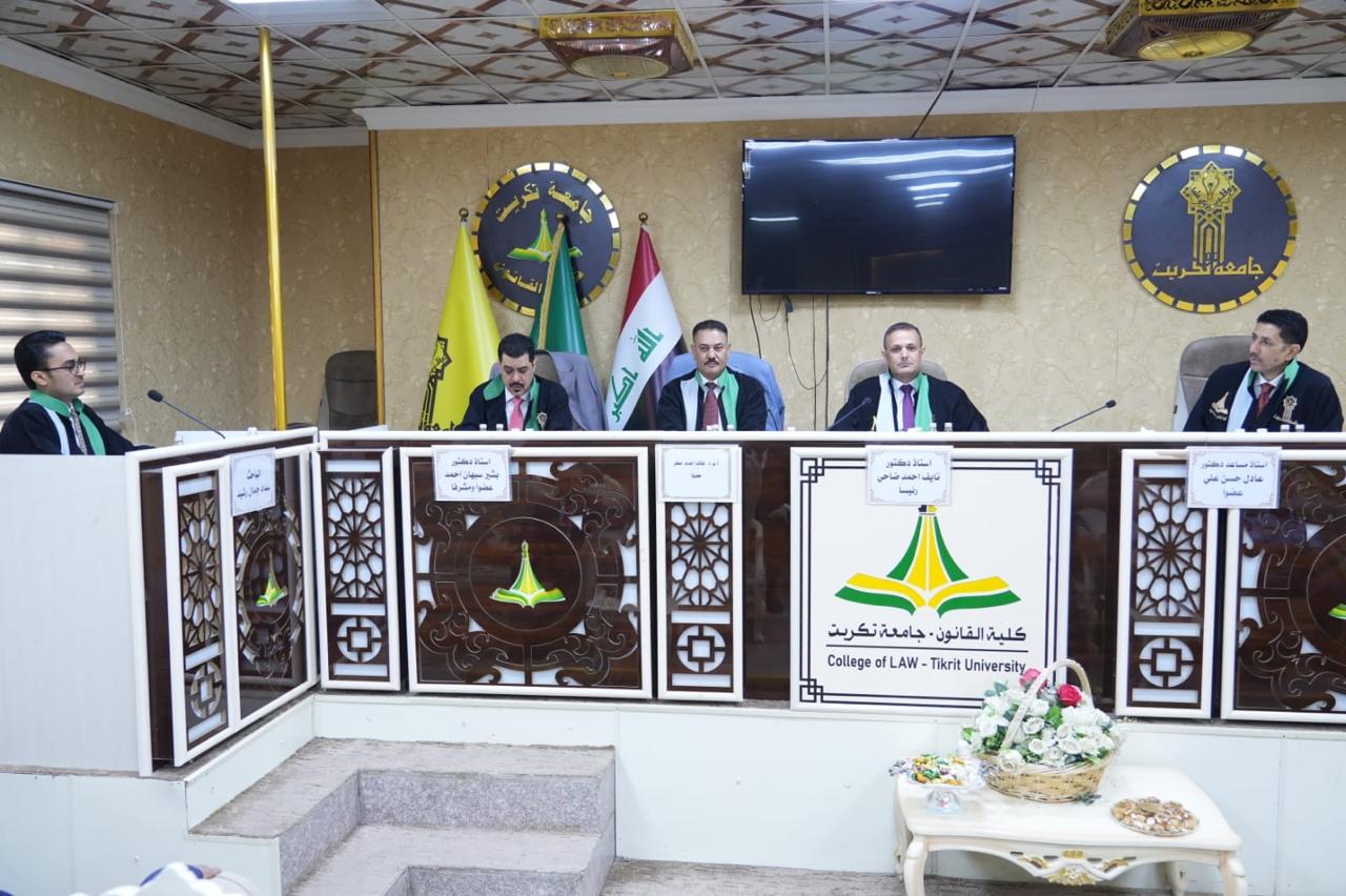 نوقشت في كلية القانون - جامعة تكريت رسالة ماجستير في القانون العام للطالب (سداد جمال رشيد) والموسومة ب (التنظيم القانوني للفضاء الخارجي بين السيادة الوطنية والمصلحة الدولية (دراسة في معايير الاستخدام وحقوق الدول) وذلك على قاعة الشهيد الدكتور ضامن العبيدي صباح يوم الاحد الموافق 21-9-2025.