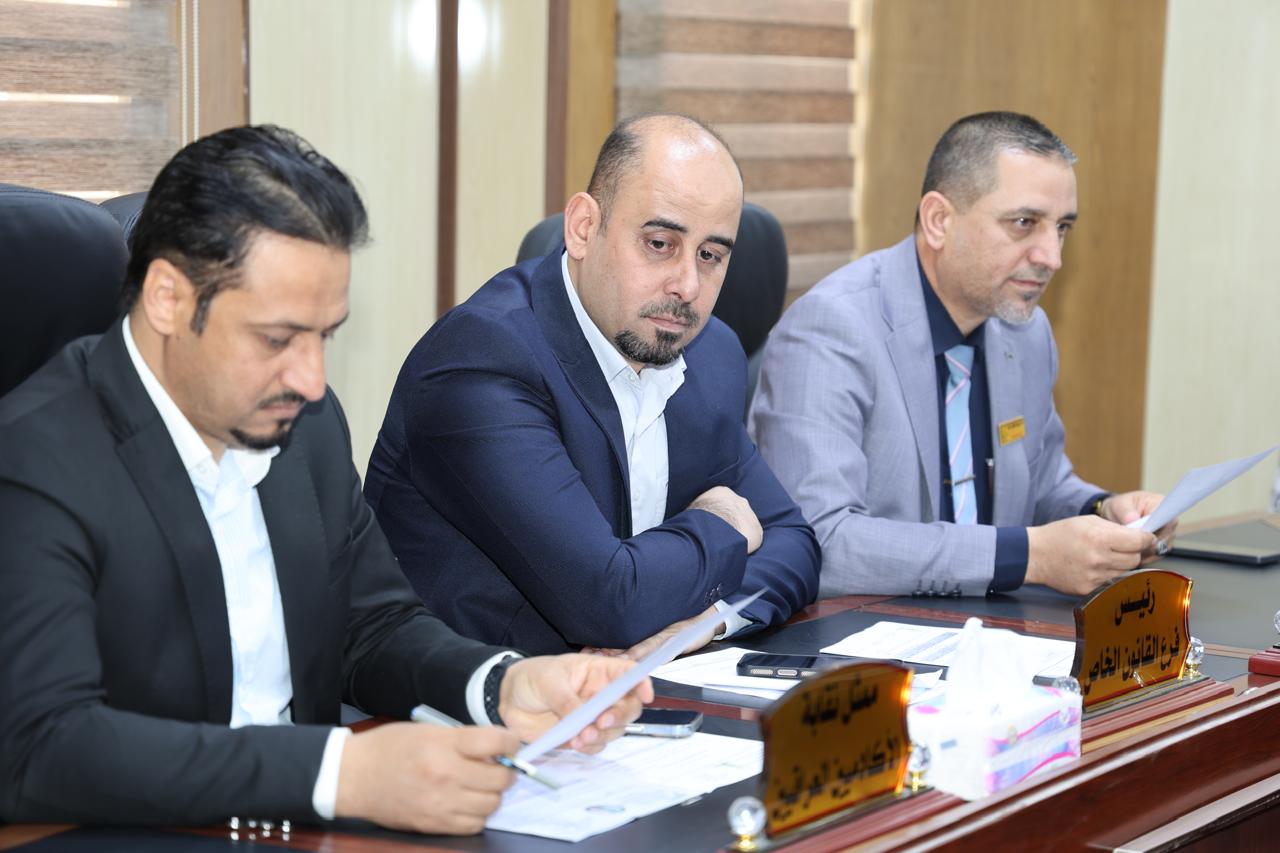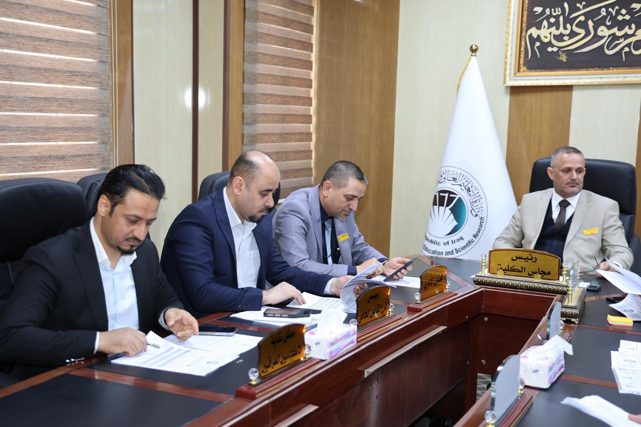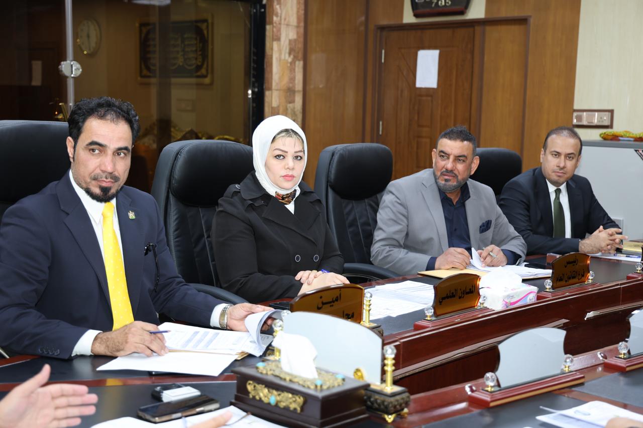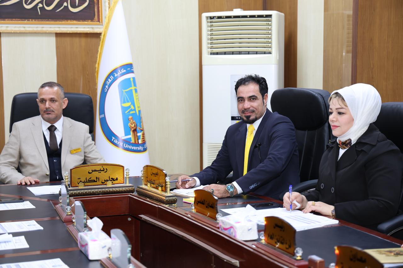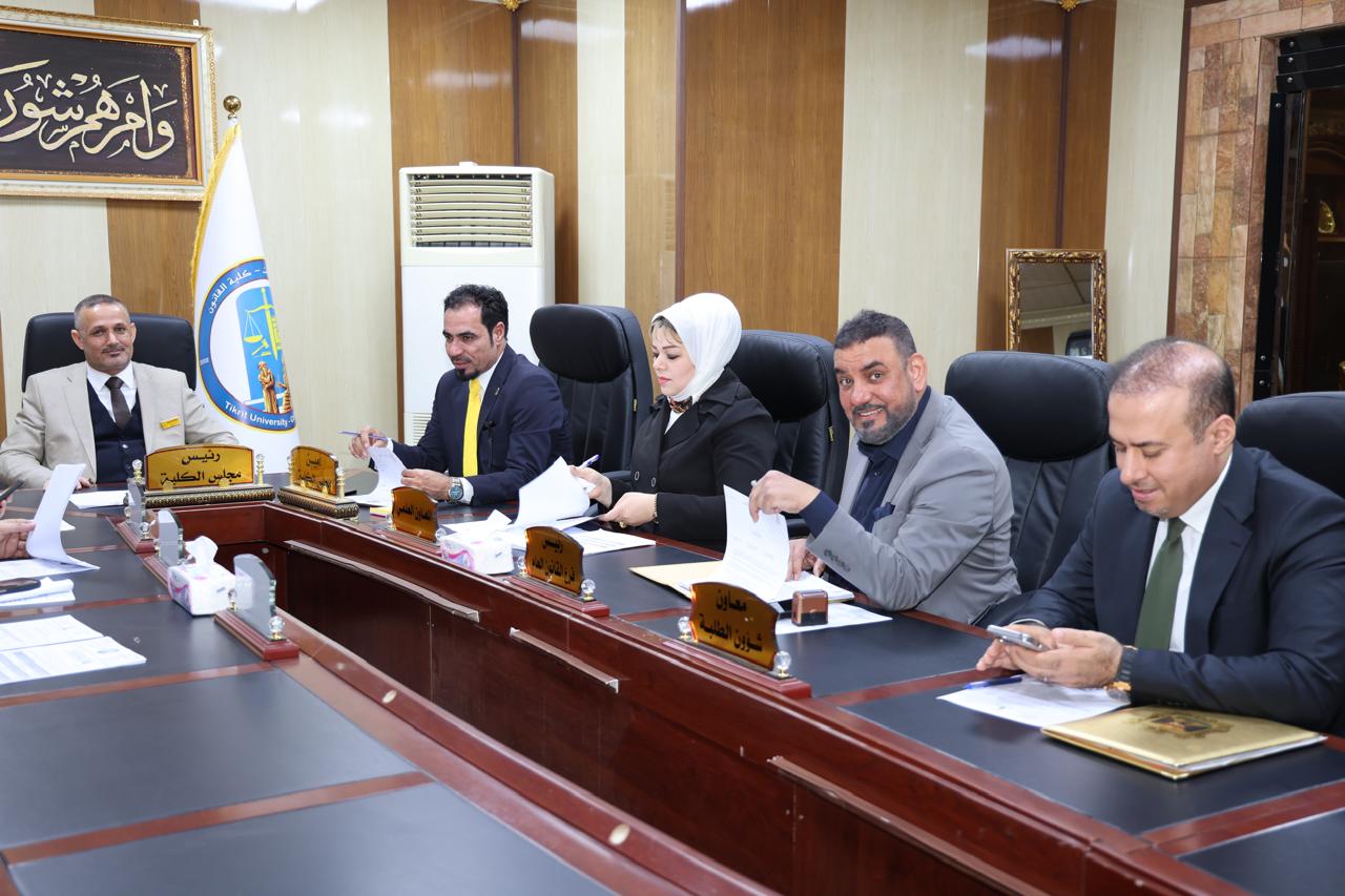 عقد مجلس كلية القانون – جامعة تكريت صباح يوم الاثنين الموافق 30-3-2026 جلسته الثانية عشر برئاسة السيد عميد الكلية أ.د. نايف احمد ضاحي وبحضور السادة أعضاء المجلس كافة، حيث جرى خلال الجلسة مناقشة عدد من القضايا الأكاديمية والإدارية المدرجة على جدول الأعمال، واختُتمت الجلسة بتوجيه السيد العميد شكره للسادة الأعضاء؛ لما أبدوه من ملاحظات قيّمة ومقترحات بنّاءة تخدم مسيرة الكلية وتسهم في الارتقاء بمستوى الأداء الأكاديمي.